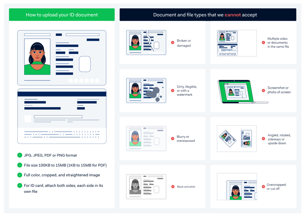- Identity card (ID): a copy of the front and back and saved in separate files.