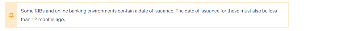 - The date of issuance needs to be visible and needs to be dated less than 12 months ago. This requirement applies to all types of documents except for RIBs, cheques, online banking environment or TAMIEYTHPIO.