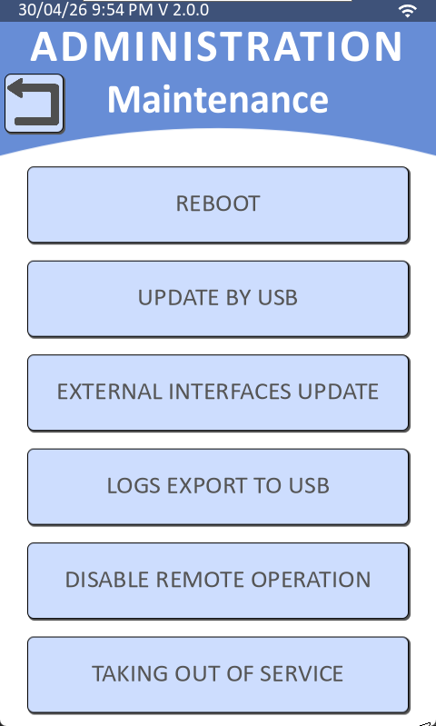 Turn the key (physical key) to enter Administration mode