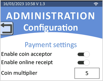 Add a new advanced parameter ‘coin multiplier’ required to tune the accepted coins range for currencies with coins with a high value (for example: 10 pesos Mexican coin). By default, coin multiplier = 5 with a coins range from 0.05 to 5.00, for coin multiplier = 10 the coins range would be from 0.10 to 10.00.