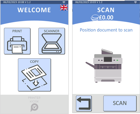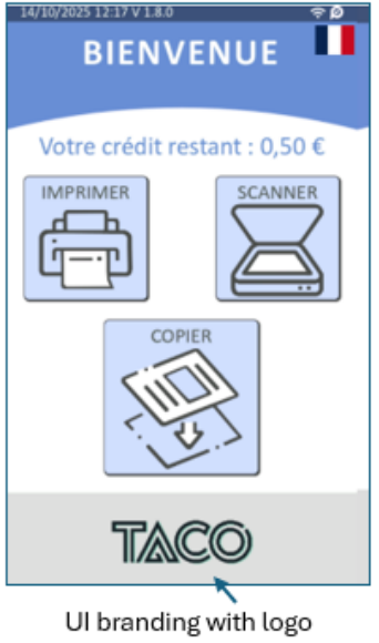 [Interface utilisateur] Personnalisation de l'interface utilisateur avec logo : possibilité de remplacer le logo PrinterKiosk (PK) par défaut par un logo client ou partenaire personnalisé sur l'interface utilisateur.
