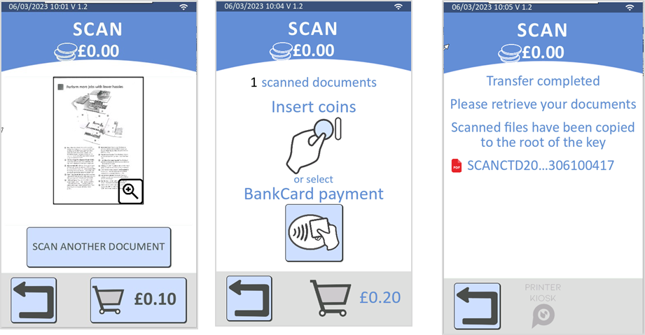 - Scanned documents are transferred on the USB stick after payment.