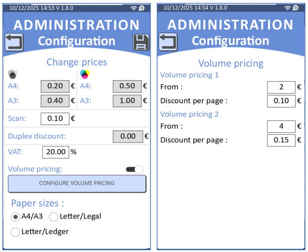 - MFP paper format (A4/A3, Letter/Legal, Letter/Ledger) can now be setup in the admin menu (MFP menu)