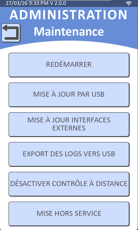 Sur l’écran, appuyez sur “Maintenance”